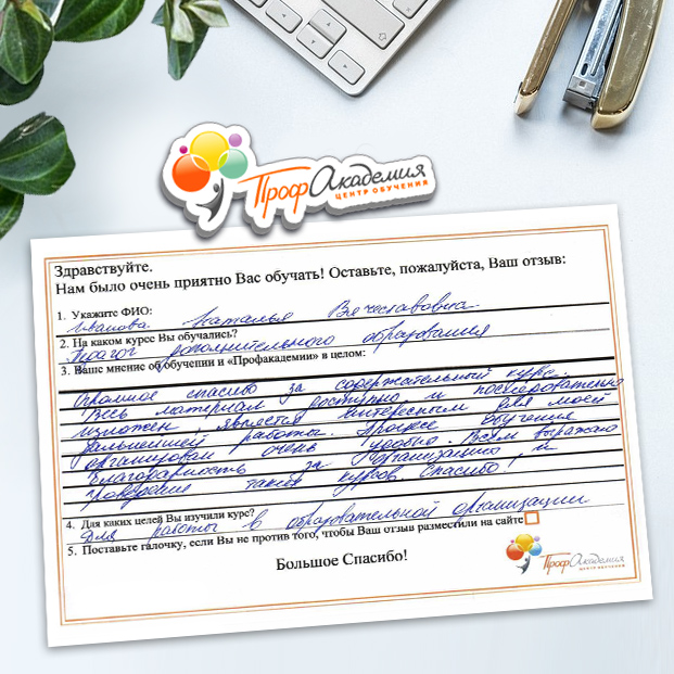После успешного окончания обучения вы получите документы установленного образца. Высылаем по почте заказным письмом.
